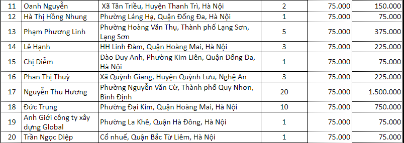 CẬP NHẬT DANH SÁCH KHÁCH HÀNG MUA NƯỚC TẮM MÙI GIÀ TRONG CHƯƠNG TRÌNH GÂY QUỸ ĐỒNG HÀNH CHỐNG COVID " NHẬN MAY MẮN - GỬI BÌNH AN":
