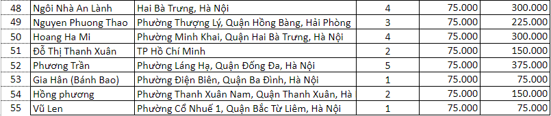 Trong giai đoạn đầu tiên này, Quỹ đã thu về được 45.825.000đ. Danh sách những khách hàng đã tham gia mua Nước tắm giao thừa trong khuôn khổ Quỹ đồng hành chống dịch của Mộc Hương được công khai trên website mochuongvietnam.vn. Cả nhà có thể xem dưới bình luận bài viết này.