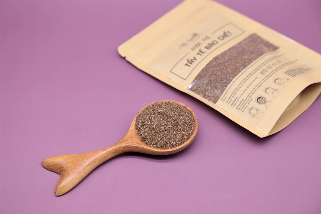 Tẩy tế bào chết Tía tô - hoa hồng giá chỉ 120k/gói 120gram, sử dụng được khoảng 36 lần cho mặt hoặc 12 lần cho toàn thân.
