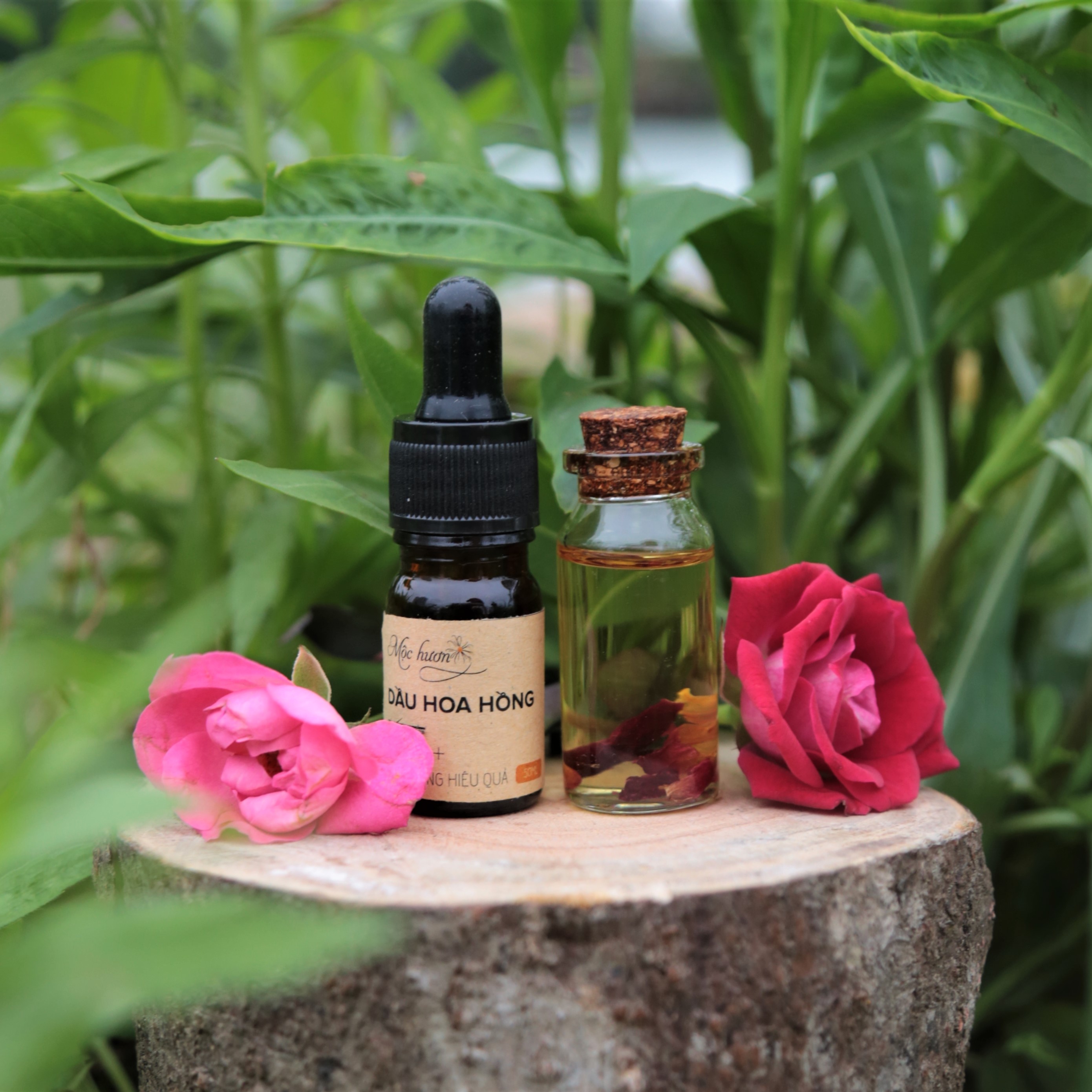 So sánh 2 loại dầu dưỡng Tía tô và Dầu dưỡng hoa hồng của Mộc Hương