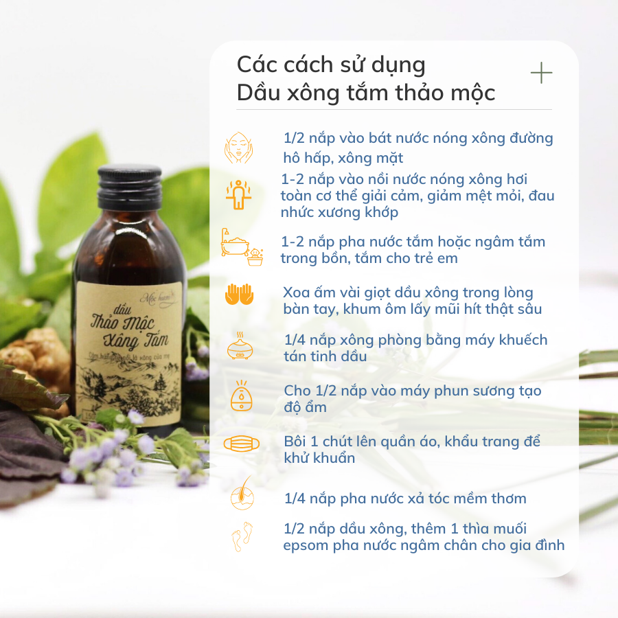 Xem thêm thông tin về sản phẩm Dầu xông tắm thảo mộc của Mộc Hương tại: https://mochuongvietnam.vn/dau-xong-tam-thao-moc.