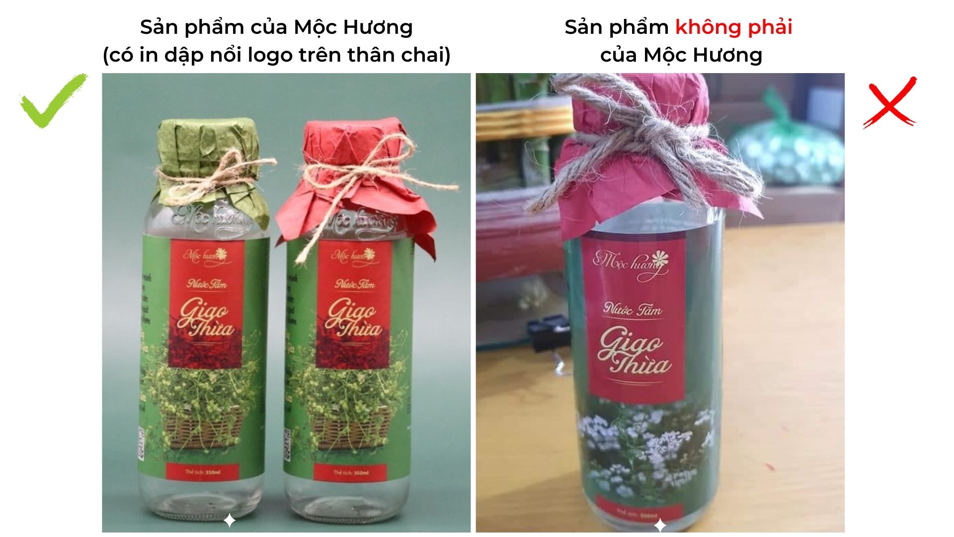 Về hình thức, họ có thể làm ra được chai nhãn màu xanh đỏ hao hao giống như của Mộc Hương, nhưng sẽ không có được logo dập nổi trên thân chai. Sản phẩm cũng thiếu sự chỉn chu, sắc nét.