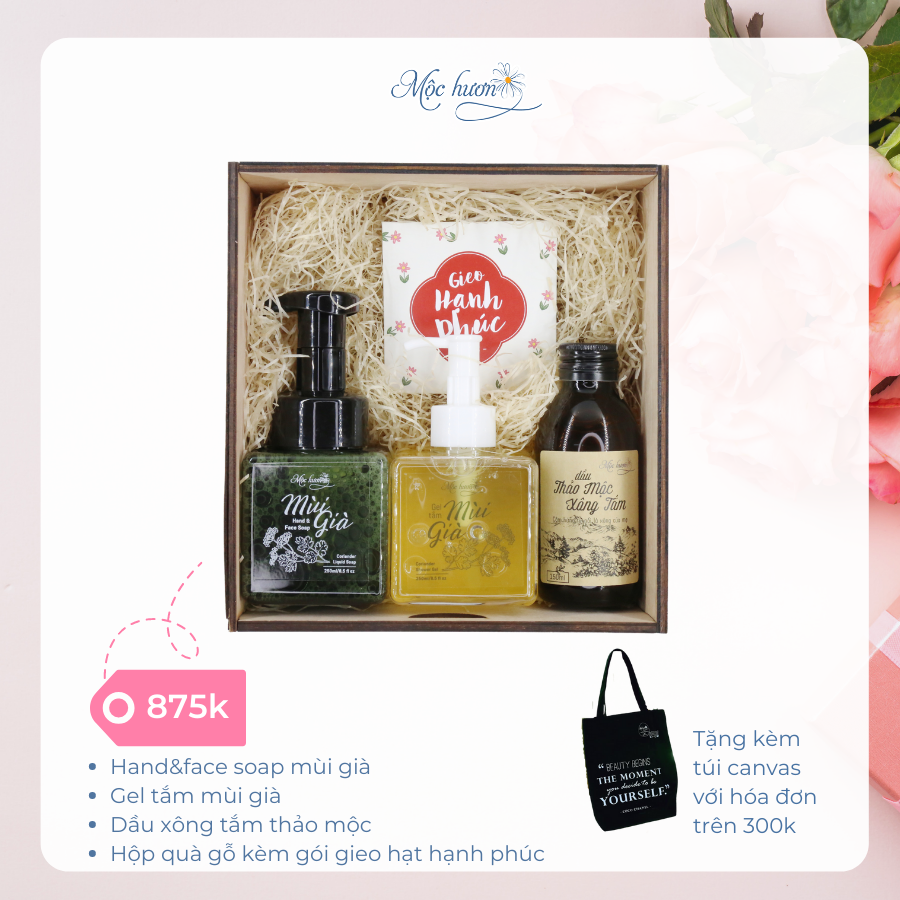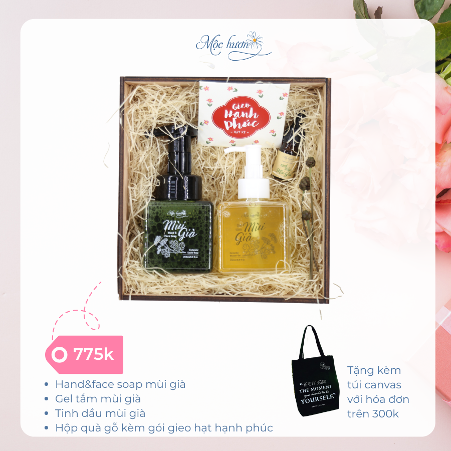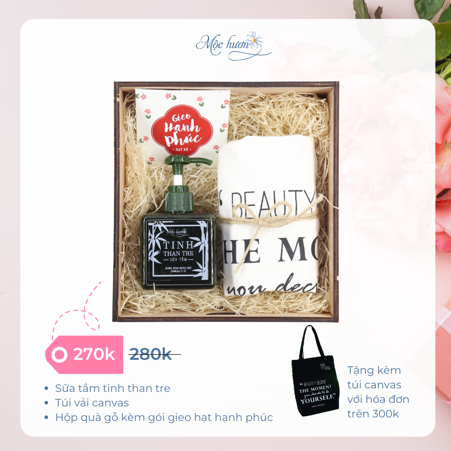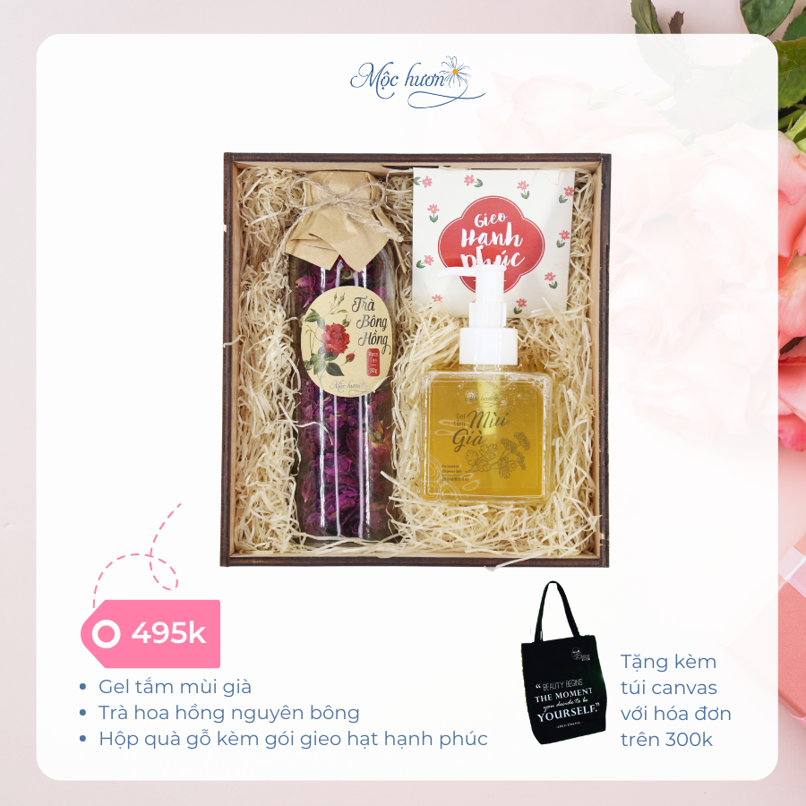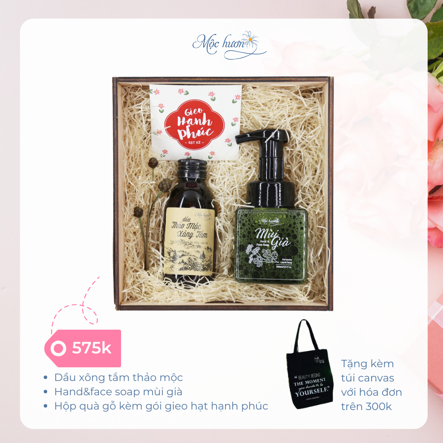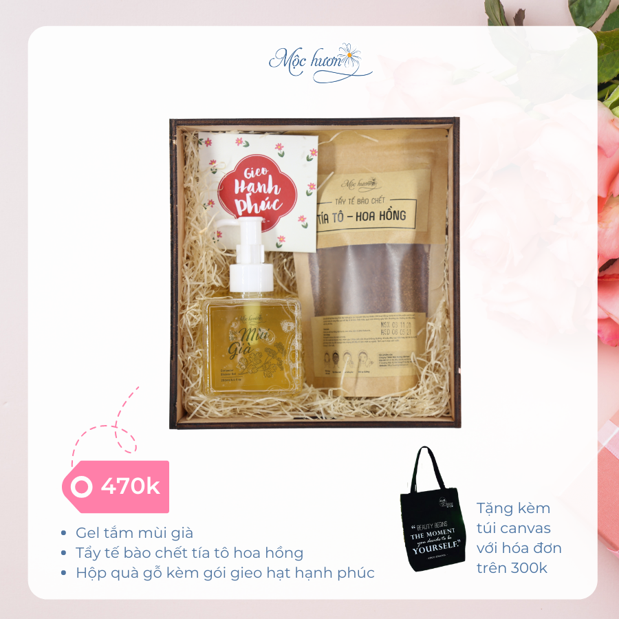 Trong dịp 8/3 này, Mộc Hương gợi ý cho cả nhà các set quà độc đáo, vô cùng tinh tế, mang hương sắc của thiên nhiên gói ghém trao trọn yêu thương đến một nửa của thế giới ấy. Các set quà đa dạng về sản phẩm, mức giá hoặc bạn có thể tuỳ ý mix thêm các sản phẩm khác của Mộc Hương nếu thích. Ib ngay để Mộc Hương tư vấn thêm nha.