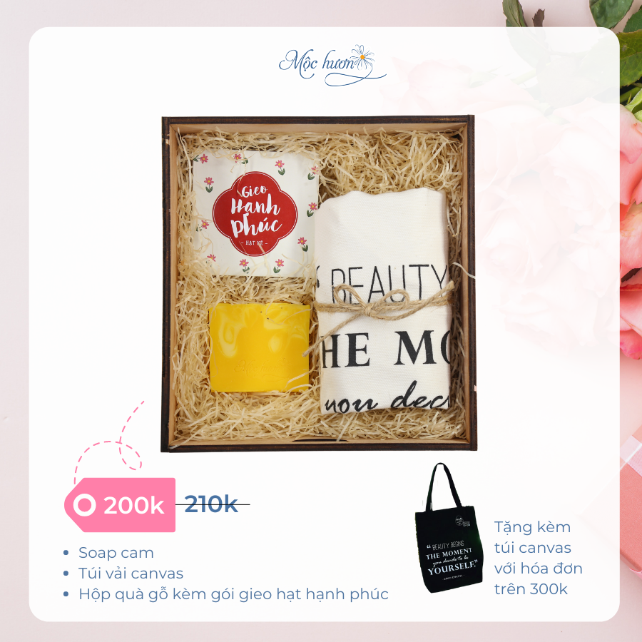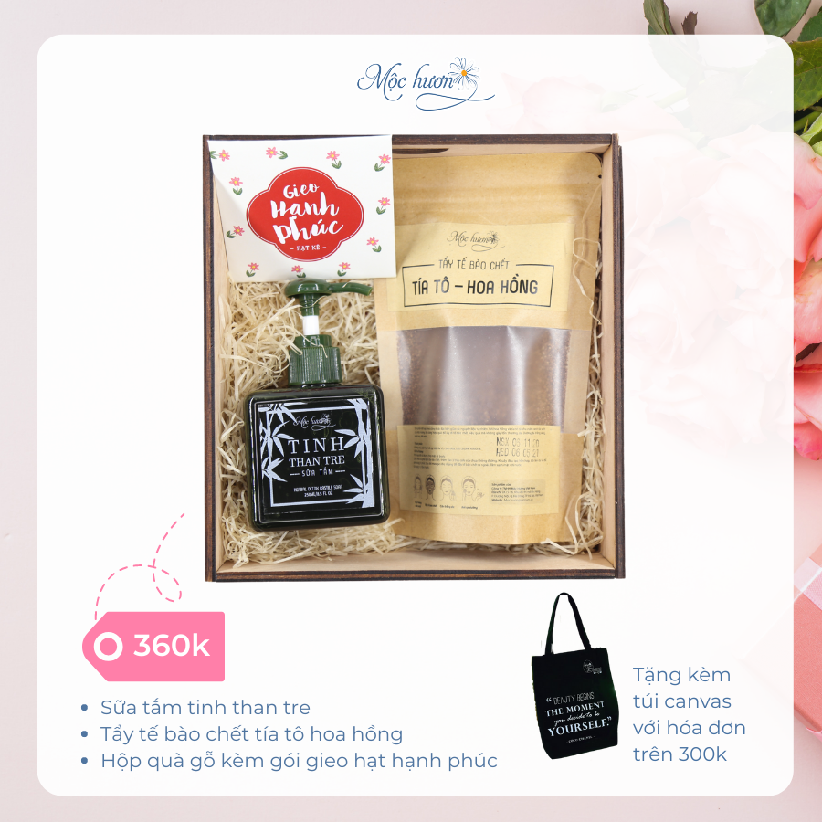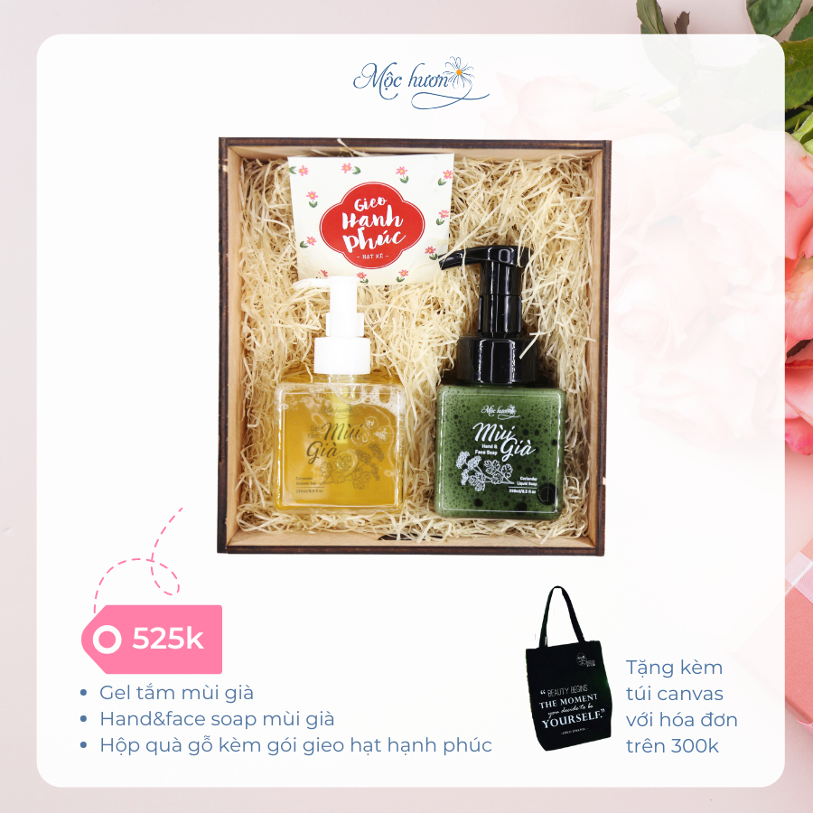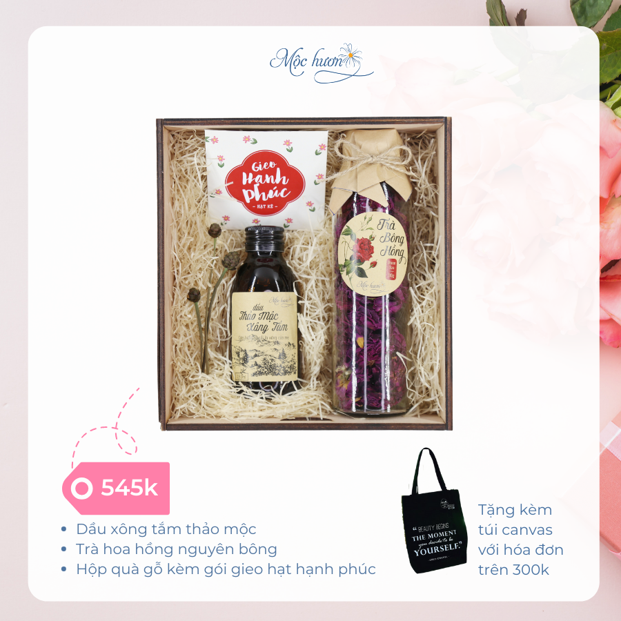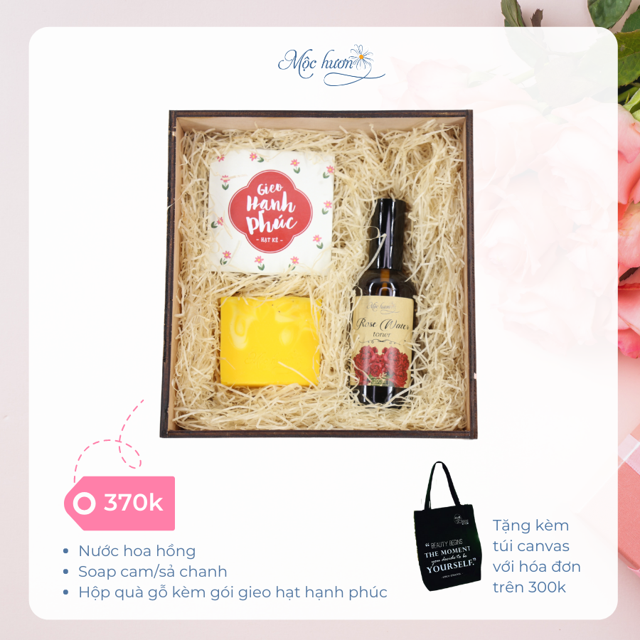 Trong dịp 8/3 này, Mộc Hương gợi ý cho cả nhà các set quà độc đáo, vô cùng tinh tế, mang hương sắc của thiên nhiên gói ghém trao trọn yêu thương đến một nửa của thế giới ấy. Các set quà đa dạng về sản phẩm, mức giá hoặc bạn có thể tuỳ ý mix thêm các sản phẩm khác của Mộc Hương nếu thích. Ib ngay để Mộc Hương tư vấn thêm nha.