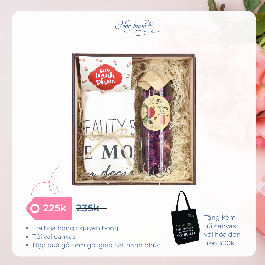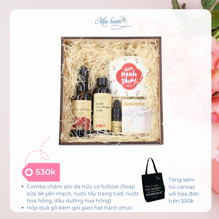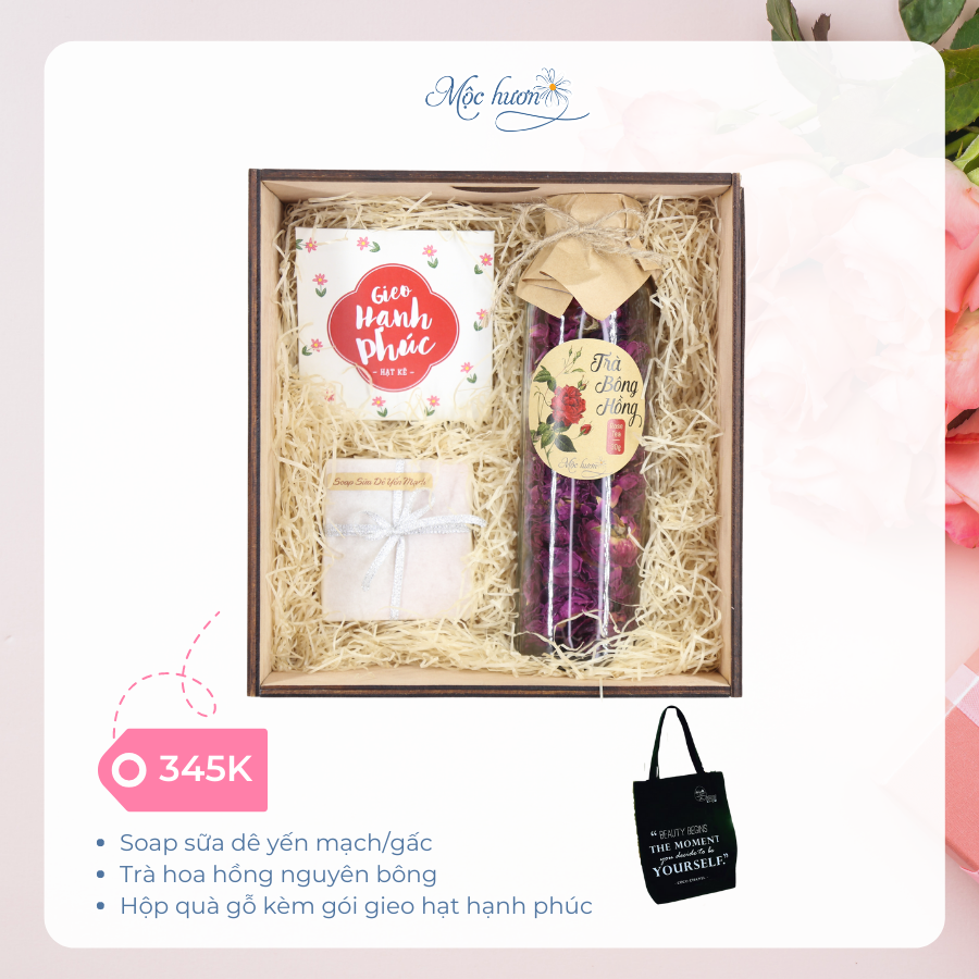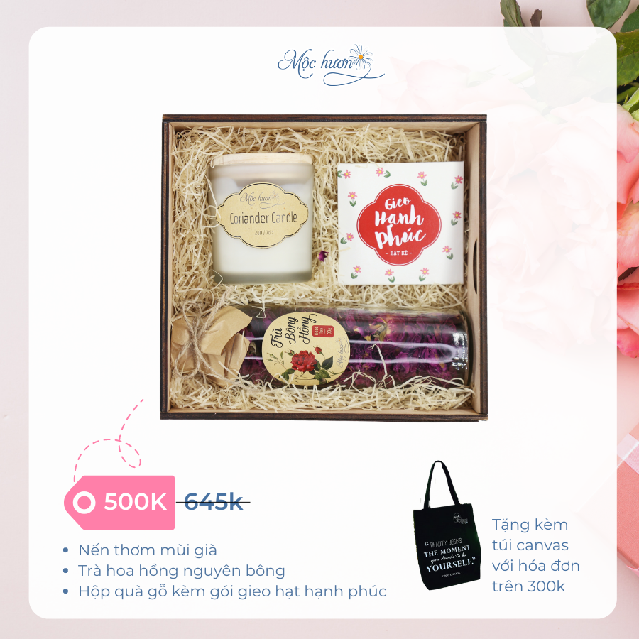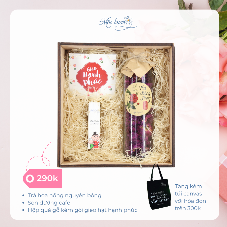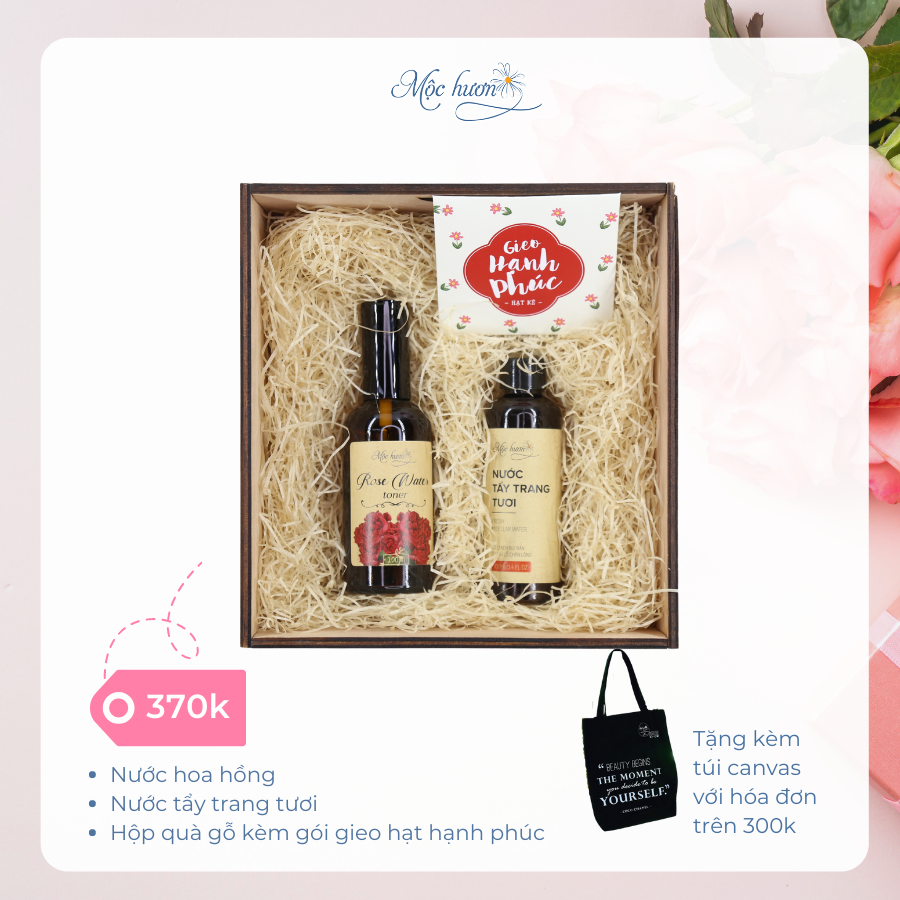 Trong dịp 8/3 này, Mộc Hương gợi ý cho cả nhà các set quà độc đáo, vô cùng tinh tế, mang hương sắc của thiên nhiên gói ghém trao trọn yêu thương đến một nửa của thế giới ấy. Các set quà đa dạng về sản phẩm, mức giá hoặc bạn có thể tuỳ ý mix thêm các sản phẩm khác của Mộc Hương nếu thích. Ib ngay để Mộc Hương tư vấn thêm nha.