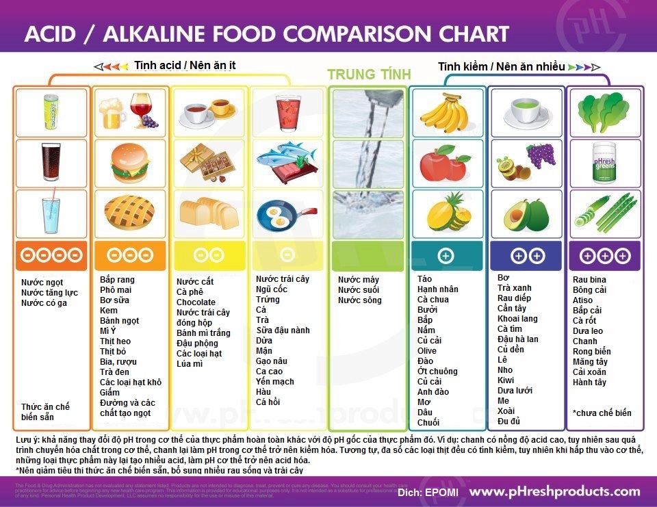 Bảng thực phẩm acid và kiềm dưới đây đã phân chia rất rõ ràng rồi, mọi người tham khảo thêm nhé.