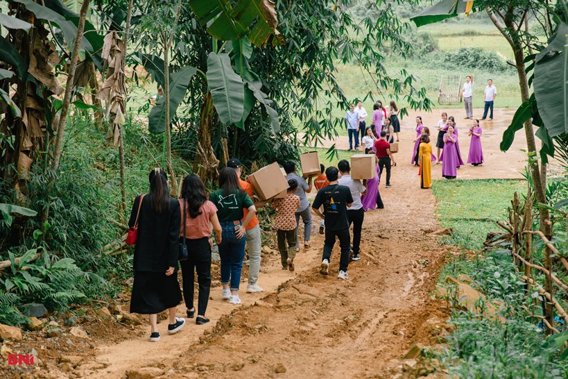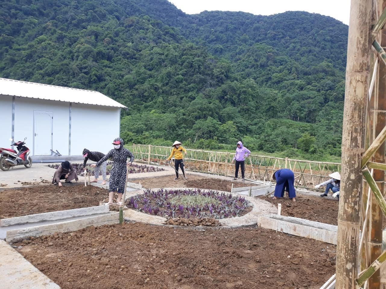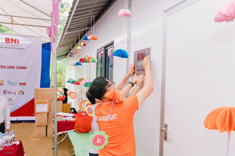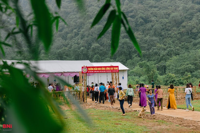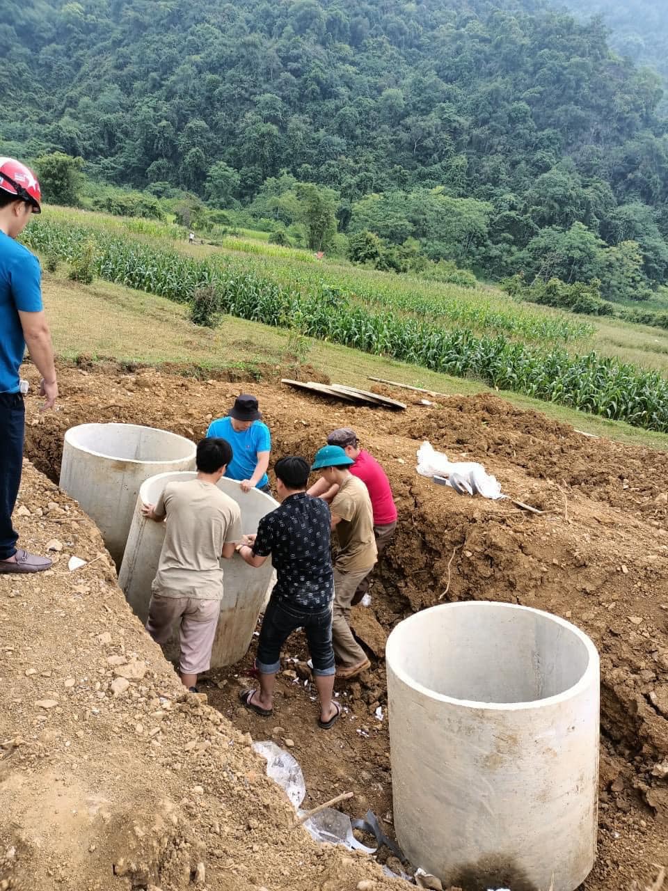 Chúng mình ở xa đóng góp tiền, mẫu bản vẽ, nhà thi công. Người dân và các cô giáo, chính quyền góp công. Vậy là các con có ngôi trường sạch đẹp view núi đồng xanh mướt với đẩy đủ tiện nghi cần thiết.