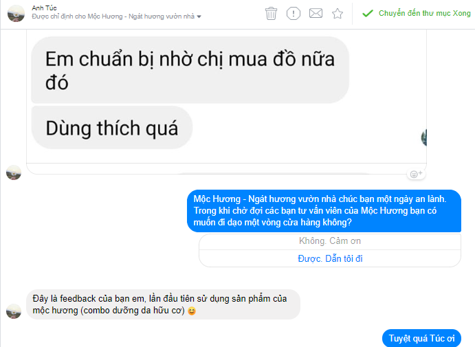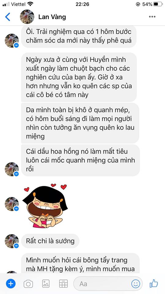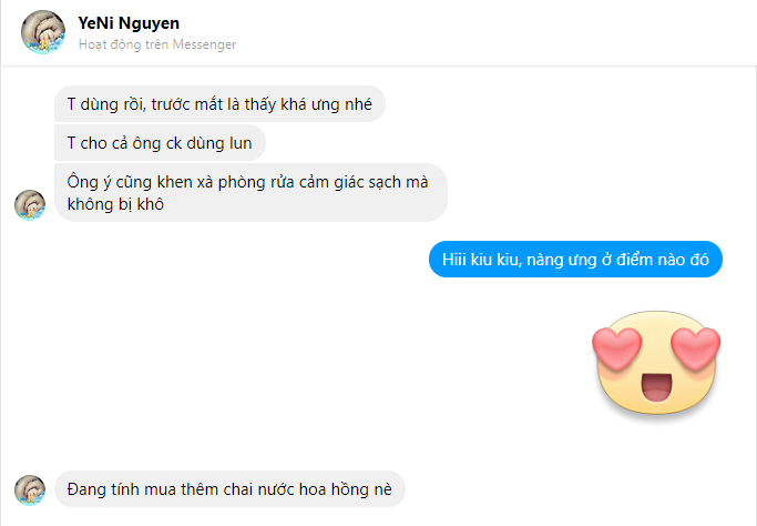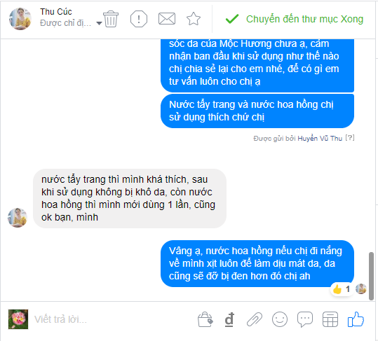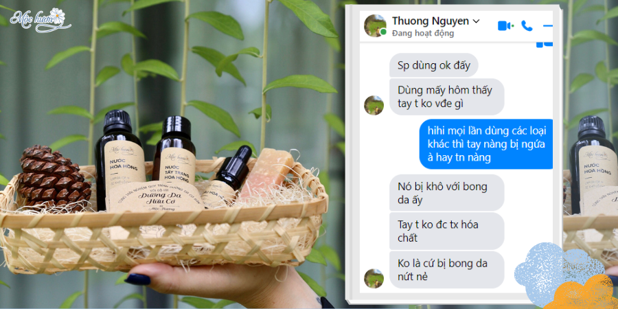 Tiếp xúc với Mộc Hương lần đầu tiên, các chị em luôn có tâm lý e dè, hỏi đi hỏi lại cho chắc, bởi họ gần như đã mất niềm tin sản phẩm lành tính, dịu nhẹ cho làn da của họ trước đó rồi. Cho đến khi chậc lưỡi, quyết định thử sai thêm 1 lần nữa với Mộc Hương. Thật là may mắn quá, hầu hết tất cả đều đã tìm thấy sản phẩm chân ái của mình. Chị Công Nương là 1 trong số đó đấy. Làn da nhạy cảm khiến chị ấy không dùng được loại nước tẩy trang nào khác ngoài Nước tẩy trang tươi của Mộc Hương và giờ chị muốn thử dùng thêm nước hoa hồng xem thế nào.