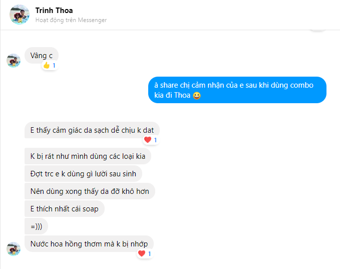 Mộc Hương sẽ tổng hợp những feedback về Combo chăm sóc da hữu cơ tại đây nhé. Nếu bạn còn phân vân đừng ngần ngại inbox Mộc Hương để chúng mình tư vấn nhé.