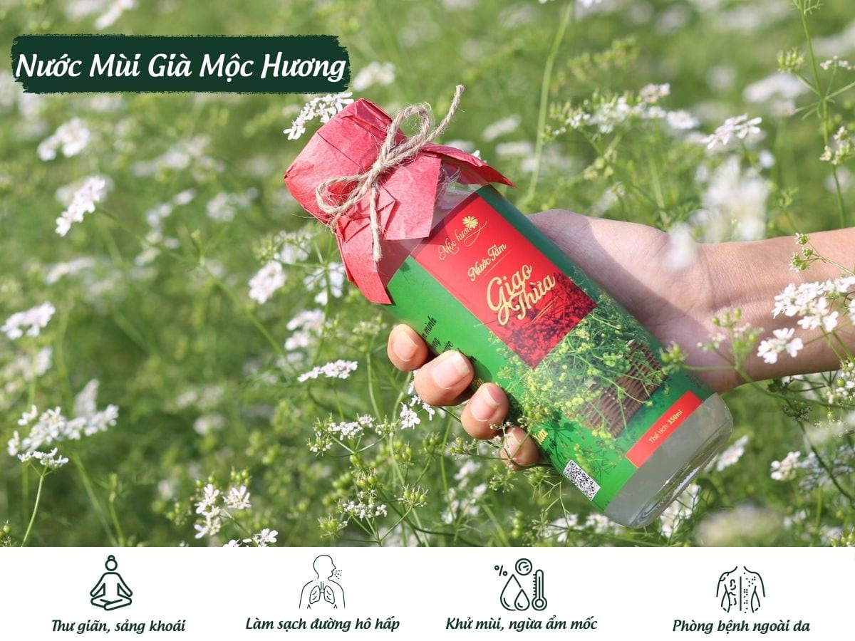 Vào thời điểm giao mùa giữa đông và xuân như bây giờ ở miền Bắc, trời nồm nhiều, độ ẩm rất cao, tạo cơ hội cho vi khuẩn, dịch bệnh sinh sôi phát triển. Từ xa xưa ông cha ta thường tắm nước lá mùi già để phòng bệnh sởi, thanh tẩy cho cơ thể và nhà cửa. Bởi Mùi già vị cay, ấm, có tính dương, lưu thông khí huyết. Khả năng để làm ấm cơ thể, diệt khuẩn thì mùi già là loại thảo mộc tốt nhất trong vườn vào thời điểm này. Từ đó tới nay, như một bí truyền của gia đình, nhiều người vẫn sử dụng nước mùi già trong suốt mùa Đông Xuân. Nếu bạn ở thành phố không tiện để tự trồng hoặc mua cây mùi già, có thể tham khảo sản phẩm Nước mùi già của Mộc Hương với tỷ lệ chiết xuất mùi già cao. Vừa tiện lợi mà vẫn giữ được giá trị dược tính nguyên vẹn của cây mùi già.