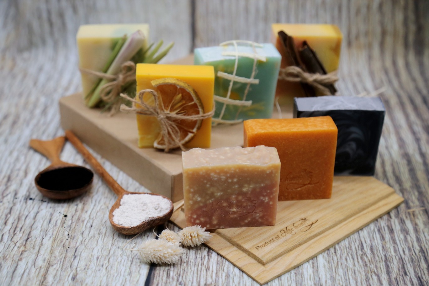 Mộc Hương có 7 loại soap: Sữa dê yến mạch, than hoạt tính, sả chanh, bạc hà, cam, quế, gấc. Hoặc bạn cũng có thể chọn loại Soap cầu vồng có chứa cả 7 loại soap trên. Soap dùng để tắm, rửa tay hoặc có thể thay thế sữa rửa mặt.