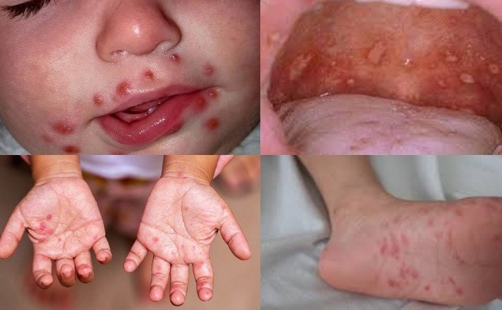 Biểu hiện của tay chân miệng là nổi mụn, bóng nước ở miệng, lòng bàn tay, lòng bàn chân. Mụn nước khiến trẻ bị ngứa, đau rát, biếng ăn,..