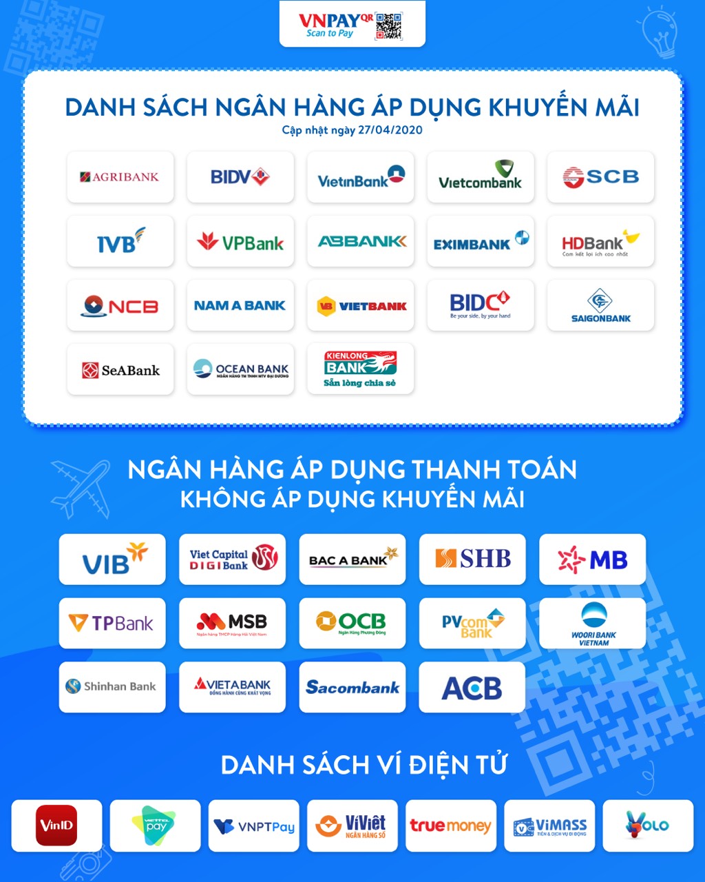 Danh sách các ngân hàng áp dụng khuyến mại QR CODE